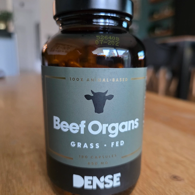 Dense Organy Wołowe to 180 kapsułek — mieszanka narządów z bydła karmionego na pastwisku. Skład bez zbędnych wypełniaczy, liofilizowane surowce. Stosowanie to kilka kapsułek dziennie z posiłkiem. Nie ma tu zaleceń typu „poczujesz efekt po tygodniu" — to suplement, nie lek. Część osób zgłasza więcej energii i lepsze samopoczucie po kilku tygodniach. Część nie zauważa nic. To zależy mocno od punktu startowego — czego Ci brakuje w diecie.